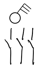 Mit der Serieschaltung können an einer Schaltstelle zwei Lampen(gruppen) geschaltet werden. Für diesen Zweck wird ein solcher Schalter verwendet: