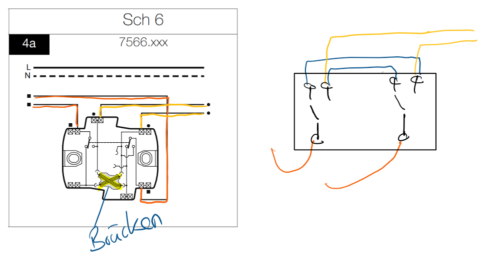 Anhand der Feller-Schalter würde die Verdrahtung so aussehen: