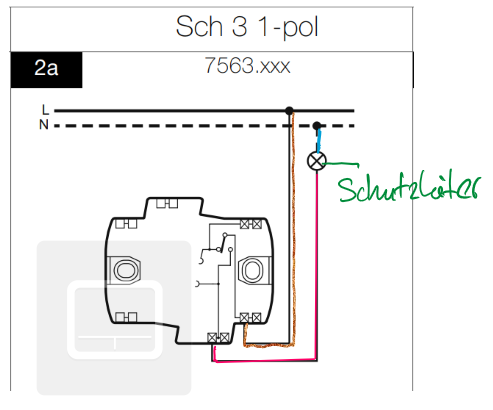 Mit Schema 0 wird eine Lampe von einem Schalter aus bedient. Die Verdrahtung sieht so aus: