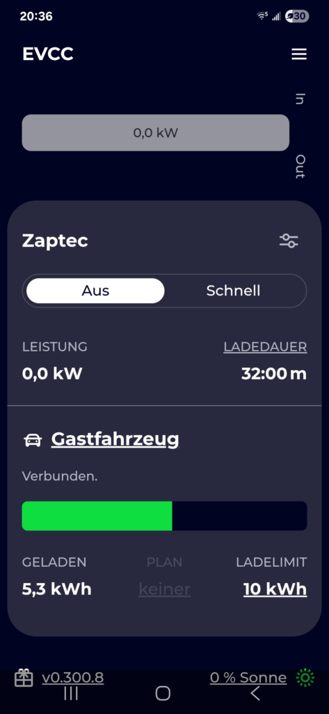 Wir werden die Lösung nutzen. Es ist eine Verbesserung gegenüber früher, als wir einen Timer stellen mussten, um den Ladevorgang manuell zu beenden. Neu übernimmt dies evcc, das auf Raspberry Pi gehostet und ausgeführt wird.