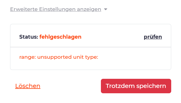 Beim Hinzufügen des Fahrzeuges gab es zwar weiterhin einen Fehler: