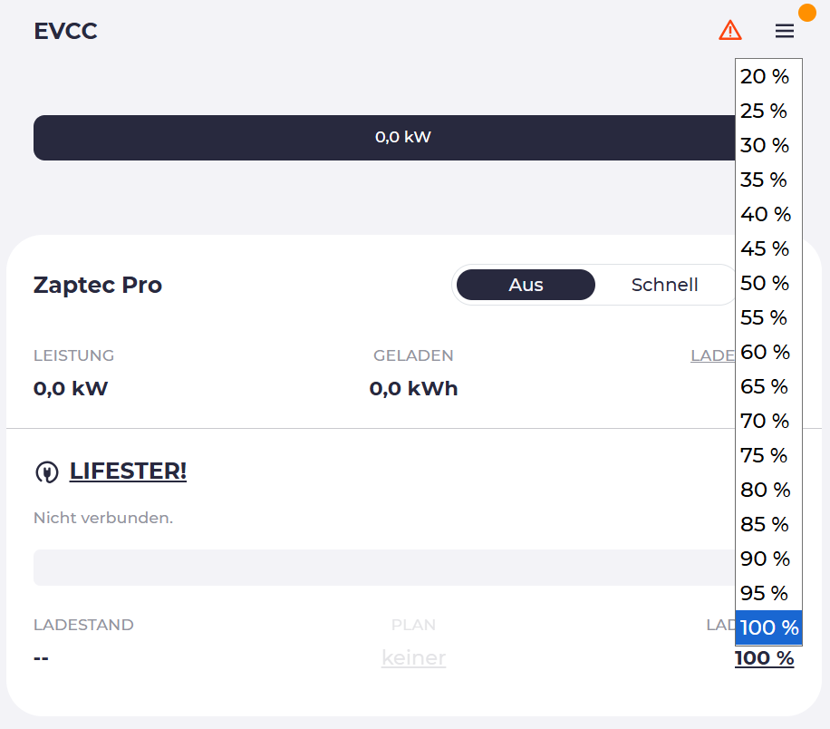 Demnach kann das Ladelimit nun auf einen relativen Wert eingestellt werden: